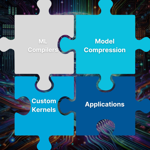 Leverage our full-stack AI expertise—from compilers to applications—to accelerate generative AI and computer vision workloads. Our MLIR and LLVM-based compiler solutions are purpose-built to optimize model inference on custom hardware, including RISC-V and bespoke architectures.